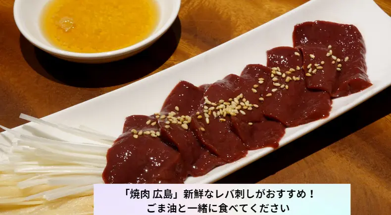 「焼肉 広島」新鮮なレバ刺しがおすすめ!ごま油と一緒に食べてください