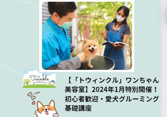 【「トウィンクル」ワンちゃん美容室】2024年1月特別開催!初心者歓迎・愛犬グルーミング基礎講座