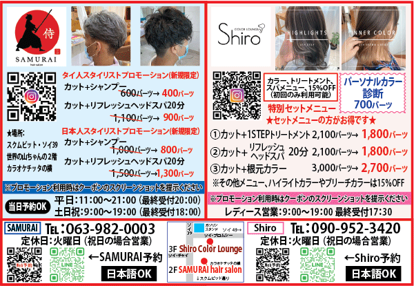 (5) SAMURAI hairsalon – タイ バンコク タイ自由ランド. https://www.jiyuland4.com/samurai-hairsalon/.