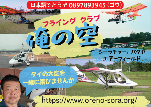 「俺の空フライングクラブ」は、タイのシーラチャーとパタヤにあるフライトクラブです。ウルトラライトプレーンやジャイロプレーン、パラモーターなどの機体を使用して、体験フライトや免許取得などのサービスを提供しています。また、シーラチャー飛行場には実銃射撃場もあります。¹²