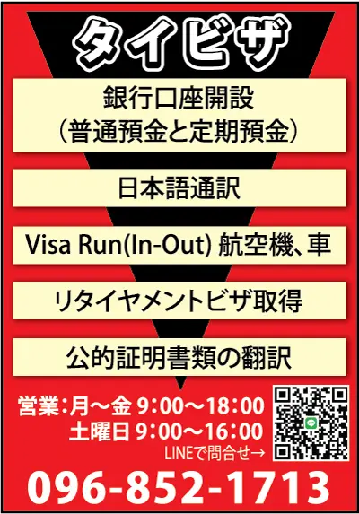 タイビザでは、タイでの銀行口座(普通預金と定期預金)の開設のお手伝いをしております。お気軽にご相談ください。