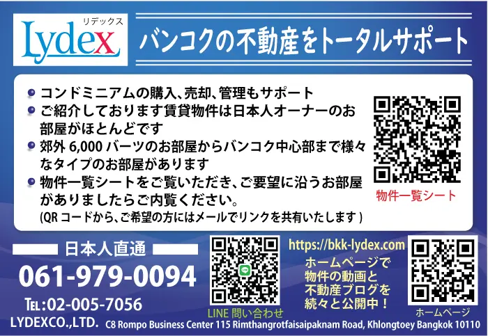 (4) バンコクの日系不動産管理会社、LYDEX(リデックス)をご紹介! | バンコクLABタイ語学校. https://labsk331.com/lydex/.