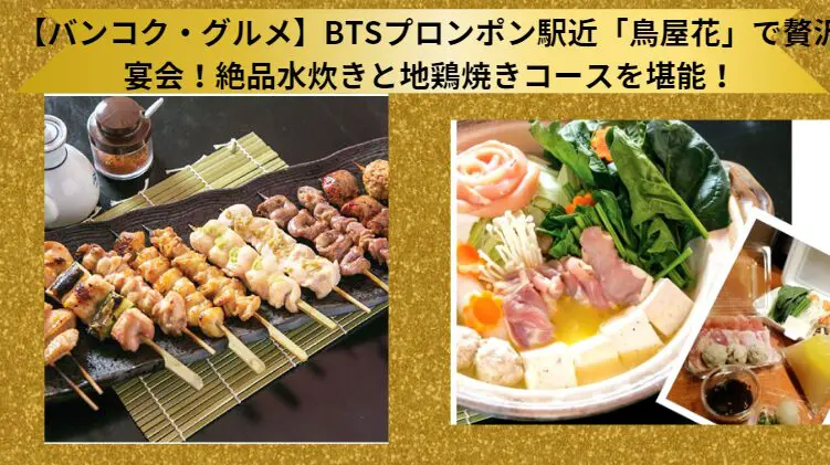 この記事を読んで、もう食べるのが待ちきれません!バンコクで日本の本格的な水炊きと地鶏焼きが楽しめるなんて、幸せすぎますよね。しかもBTSプロンポン駅からすぐとは、アクセスも抜群!「鳥屋花」さんのこだわりが詰まった料理と、心温まる接客で、素敵な時間を過ごせそうです。次のバンコク訪問がますます楽しみになりました! #バンコクグルメ #鳥屋花 #日本料理 #水炊き #地鶏焼き