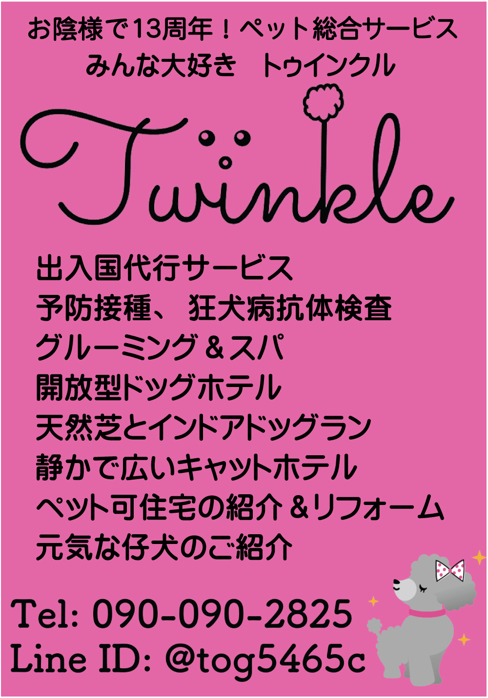 – トウィンクルでは、日本やタイへのペット出入国代行サービスを提供しており、豊富な経験と実績があります¹.