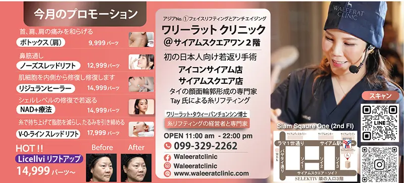 (4) 糸リフトが好評の「ワリーラットクリニック」には経験豊富な医師が常駐 | タイ バンコク タイ自由ランド. https://jiyuland5.com/post-132140/.
