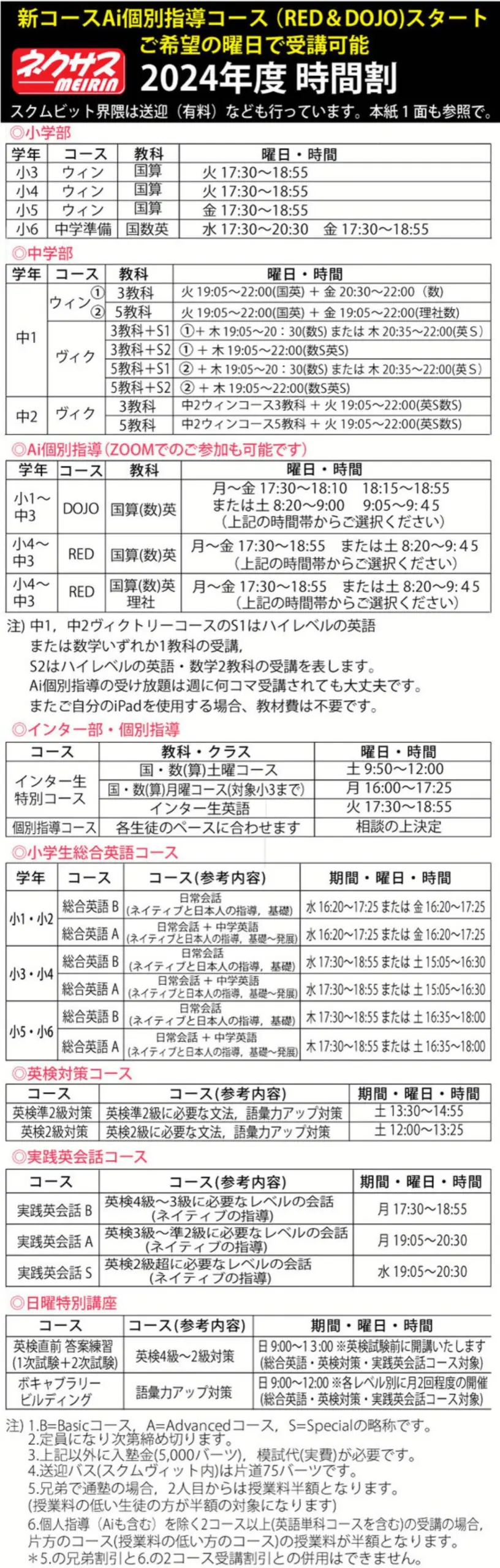 ネクサス明倫が長年に渡り蓄えてきたノウハウは、特に2年以上の長期滞在を予定している家庭にとって、子どもの学習プランニングにおいて非常に重要な要素となります。新生徒には、1週間の無料体験授業を提供し、その質の高さを実際に体感してもらう機会を設けています。安心のバス送迎サービスも、全コースにわたり利用可能です。
