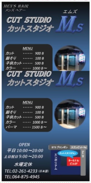 「カットスタジオ M’s」プロンポン駅からすぐちかくターミナルビルの2階