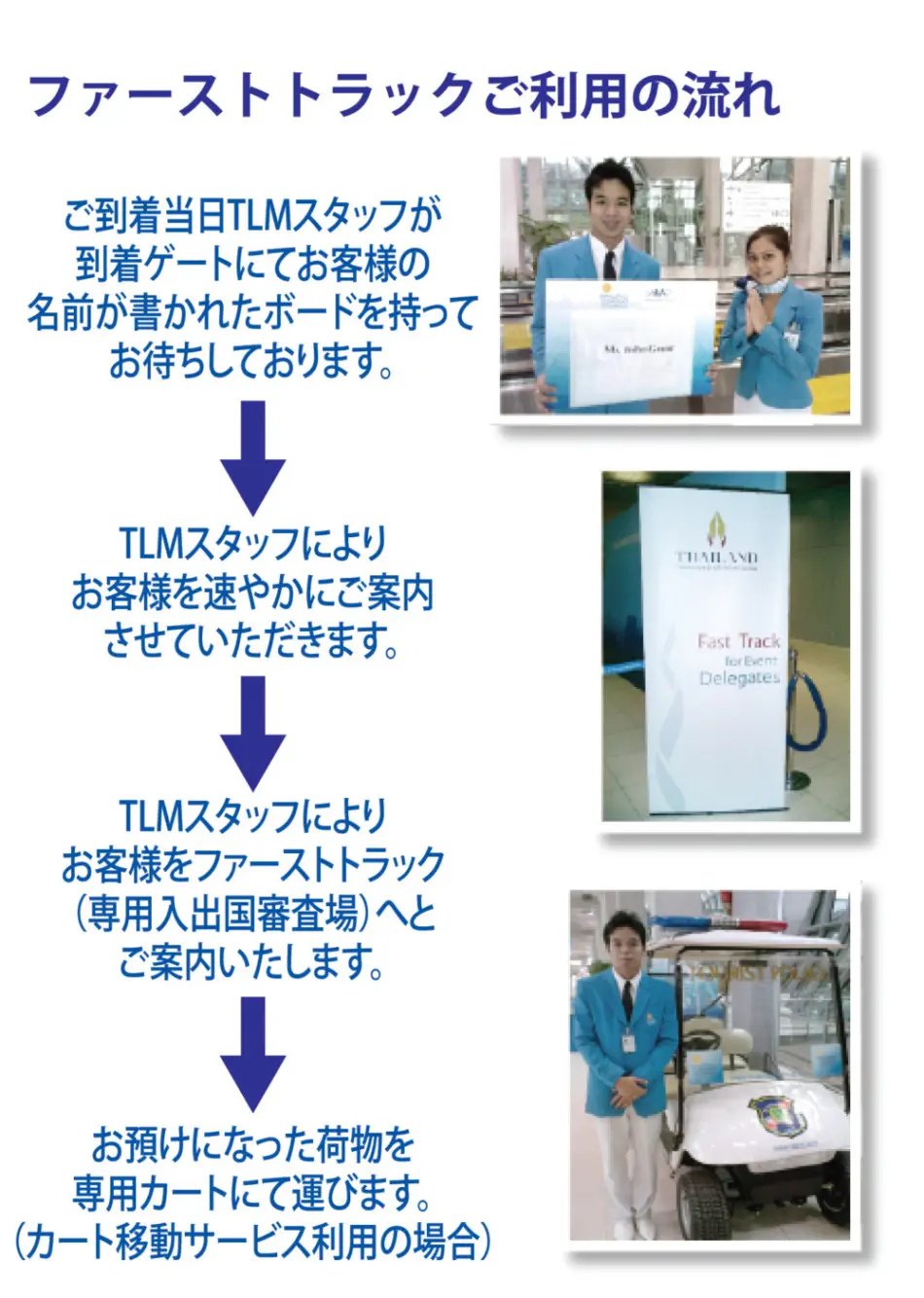 こんにちは。クラブタイランドのファーストトラックに関してですね。クラブタイランドの提供するファーストトラックで、バンコクのスワナプーム空港での出入国優先サービスを受けられます。出入国専用審査場での出入国なので並ばずスムーズに出入国できます。²³ ご参考になれば幸いです。