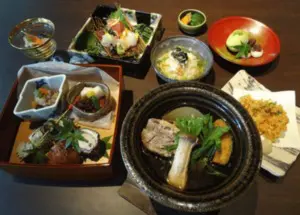 料理に関しては、春夏秋冬、四季折々の新鮮な食材を活かした会席料理が提供されます。それぞれの料理は、熟練の職人によって丁寧に調理され、美しい盛り付けで提供されます。また、接客をするスタッフは伝統的な和服を纏い、訪れる客に対して心温まるおもてなしを提供しています。