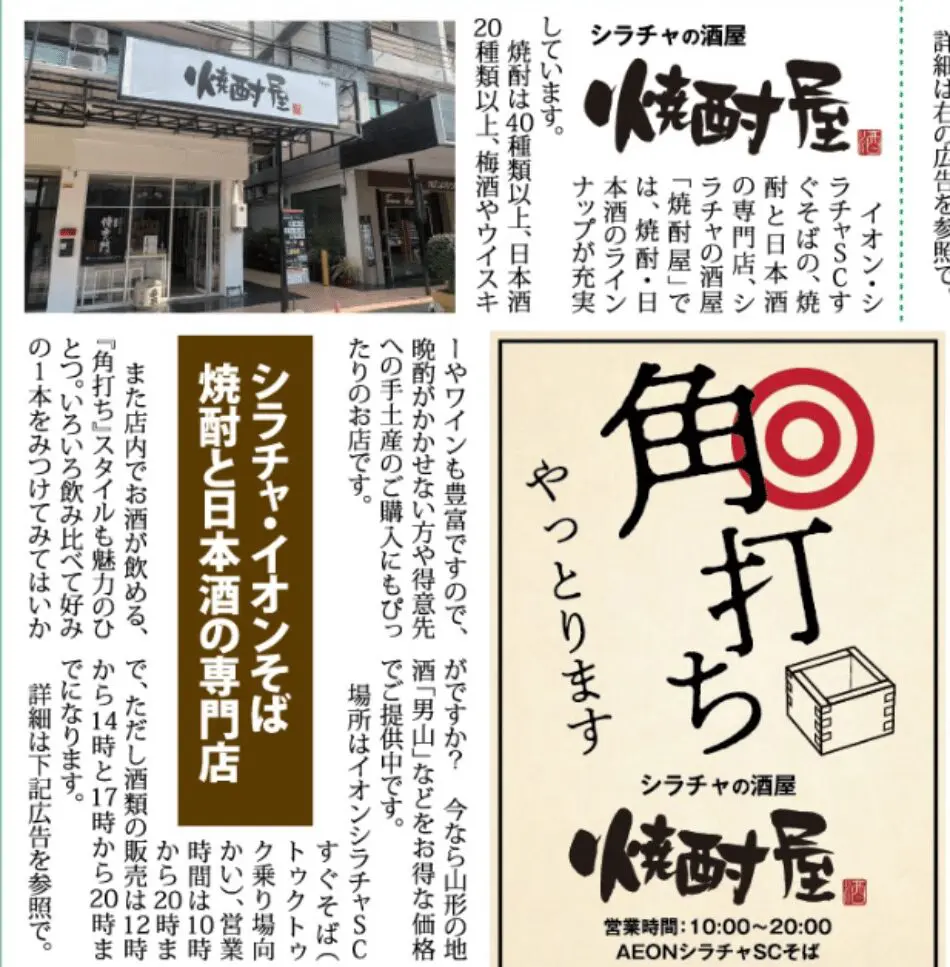 シラチャの酒屋「焼酎屋」は、AEONシラチャショッピングセンターそばにある日本酒と焼酎の専門店です。焼酎は4種類以上、日本酒は20種類以上揃え、梅酒やウイスキー、ワインも豊富です。営業時間は10:00~20:00で、『角打ち』スタイルで店内でも飲めます。山形の地酒「男山」などをお得な価格で提供中。晩酌や手土産に最適です。詳細は広告を参照ください。