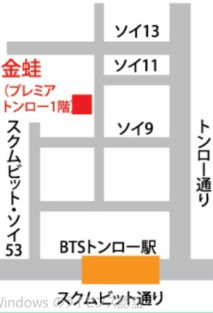 金蛙のアクセスも便利です。プレミア・トンローの1階に位置し、スクムビット・ソイ39とソイ13をつなぐ通りにあり、BTSトンロー駅からも近く、駐車場も完備されています。