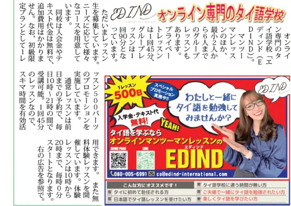 オンライン学習の利点を最大限に活かしたエディンドのプログラムは、タイ語学習の新たな扉を開くものとして、今後さらなる注目を集めることが予想されます。興味のある方は、公式ウェブサイトや提供されているLINEアカウントを通じて、詳細情報を得ることができます。