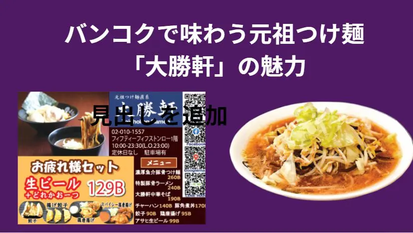 バンコクで味わう元祖つけ麺「大勝軒」の魅力