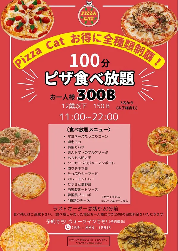 バンコクにある日本人シェフが手掛けるピザ専門店「ピザキャット(Pizza Cat)」が、好評だったピザ食べ放題を無期限で提供することを発表しました。これまで期間限定での開催でしたが、お客さんからの熱いリクエストに応える形で、毎日いつでも楽しめるようになりました。