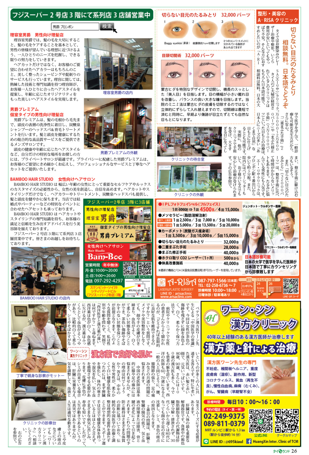 こちらの広告は、バンコクのスクンビット・ソイ39にあるフジスーパー2号店(シティリゾートビル)3階の3店舗に関するものです。