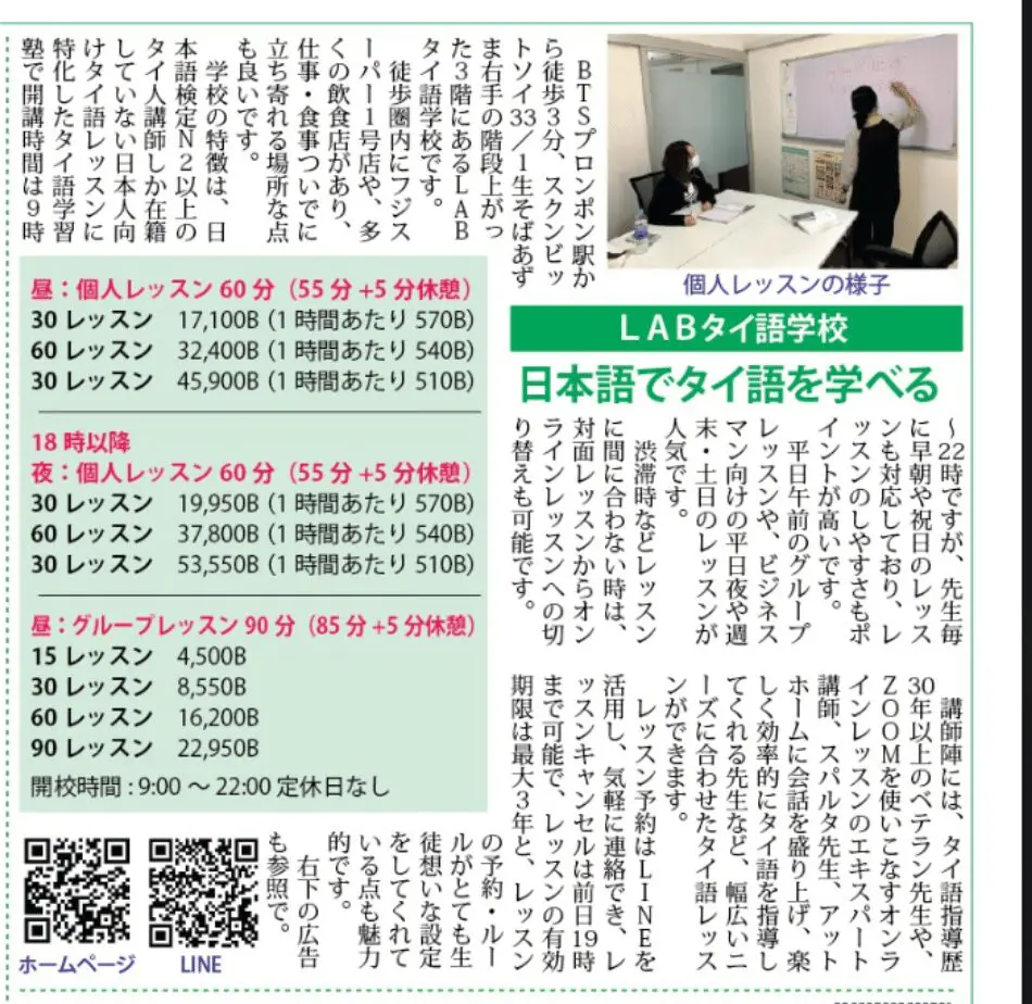 - ラボ タイ語学校 | プロンポン | タイ語スクール | バンコクフリーペーパー WOM Bangkok:https://www.wom-bangkok.com/