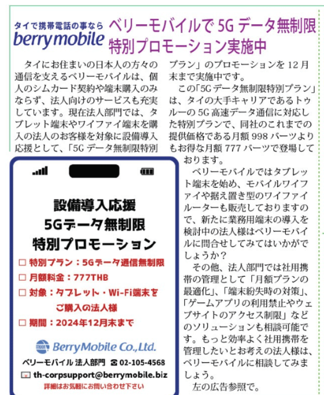 タイ国内で通信環境の改善を考えている法人様は、ぜひこの機会にベリーモバイルへお問い合わせください。通信インフラの専門家が、最適なプランとサービスを提案してくれます。詳細はベリーモバイル法人部門まで。