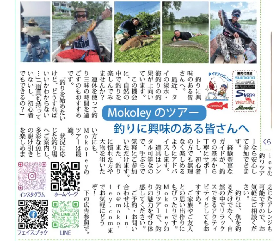 タイの淡水・海釣りの釣果が向上し、初心者から上級者まで楽しめるMokoleyの釣りツアーが人気です。経験豊富なガイドがサポートし、初心者でも安心して参加可能。レンタル道具もあり、手ぶらでOK。上級者向けには大物狙いや本格的な釣り三昧プランも用意。釣りは自然を満喫しながらリラックスできるアクティビティで、家族や友人との思い出作りにも最適。詳細・予約はinfo@mokoley.com まで。SNSでも最新情報を発信中!
