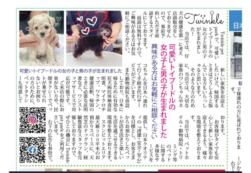 可愛らしいトイプードルの女の子と男の子が、スクンビットエリア最大級のペット施設「Twinkle Pet Park」で誕生しました!新しい家族を迎えたいと考えている方の中には、タイでのペットの生活や、将来的な帰国時の手続きに不安を感じている方もいらっしゃるかもしれません。