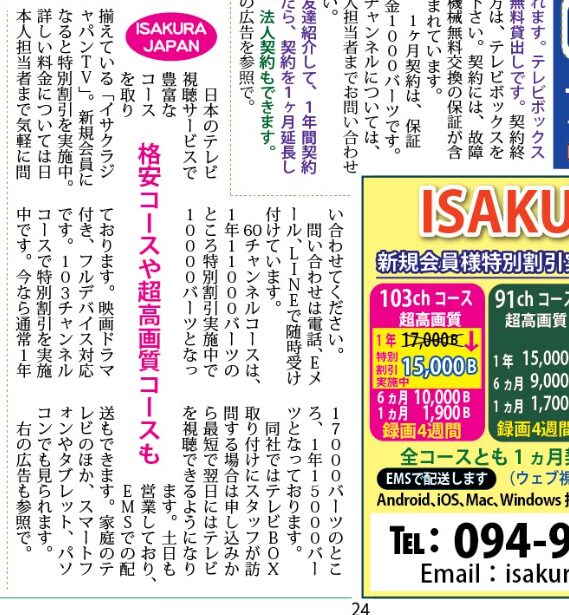 テレビ,未分類,ISAKURA TVウェブ視聴,契約手続き,日本語対応スタッフ,ISAKURA JAPAN TV,新規会員向け,割引キャンペーン,42チャンネル,高画質コース,日本のドラマ,録画再生期間