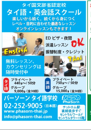 (1) タイ語・英会話スクール PhaSorn パーソーン. https://www.phasorn-thai.jp/.