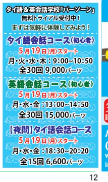 【朝】タイ語会話コース(月〜木 9:00~10:50/全30回 9,000バーツ)
