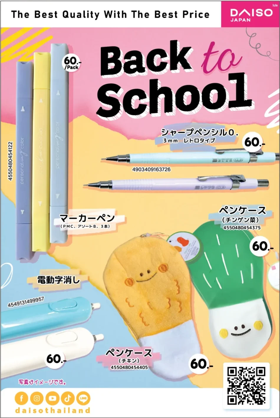 新学期にぴったりなダイソーの文房具を紹介。パステルカラーやキャラ柄のペンやペンケース、ステッカーなどが60バーツから購入可能。スクムビット周辺の店舗で気軽に手に入ります。