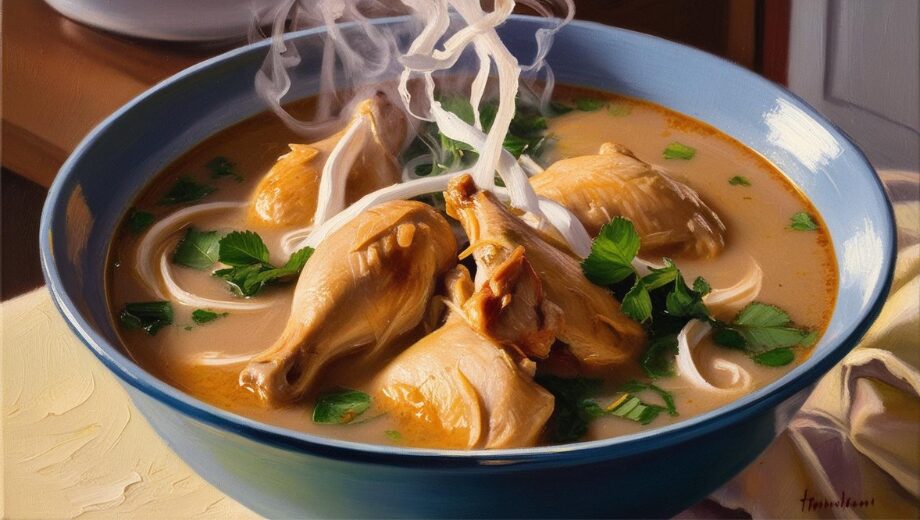 【タイの田舎の小さな家から】マンゴー片手にイサーンの風:ちゃんモンがお届けする、本場のタイ料理絵巻 🥥 トムカーガイの魔法:ココナッツミルクと鶏のほっこりラブストーリー