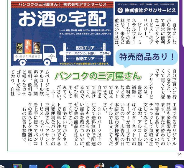 バンコクの「アサンサービス」は、ビールや日本酒、米や水など重たい生活用品を自宅まで宅配してくれる便利なサービス。350B以上の注文で送料無料、日本語対応の電話注文も可能。特売品や自社製品も充実。