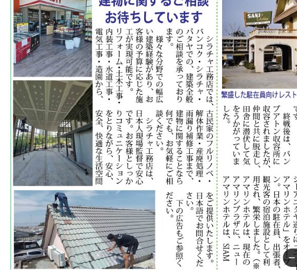 さらに、雨漏り補修工事や解体・産廃処理など、突発的なトラブルや建て替えのご相談にも柔軟に対応。タイでの暮らしに寄り添いながら、「住まいのパートナー」として頼れる存在です。