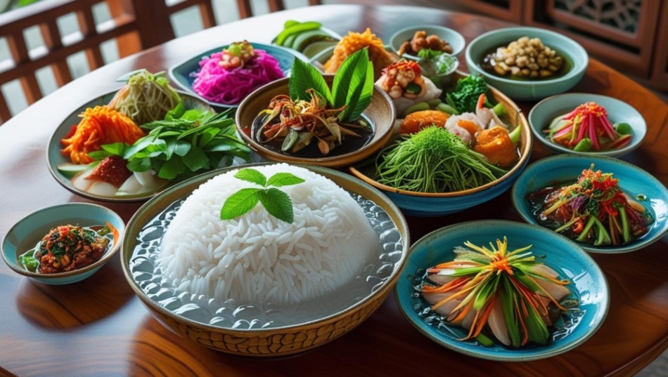 まるでタイ版「冷やし茶漬け」+「おせち料理」の組み合わせって感じでしょうか。
