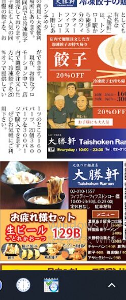 バンコク・トンローの「大勝軒」では、店内飲食者限定で冷凍餃子が20%オフになるお得なプロモーション実施中。20個160B、30個240Bと家庭用に最適。ラーメンやビールとのセットも充実し、アクセスも便利。