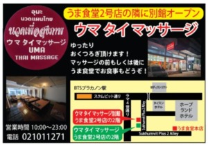 【ウマタイマッサージ】うま食堂2号店の2階に別館がオープン