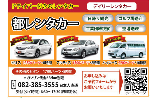 注記: ガソリン代は別途(6バーツ/km)となります。