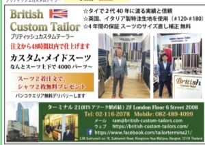 価格: カスタムメイドスーツ上下 4,000バーツ〜
