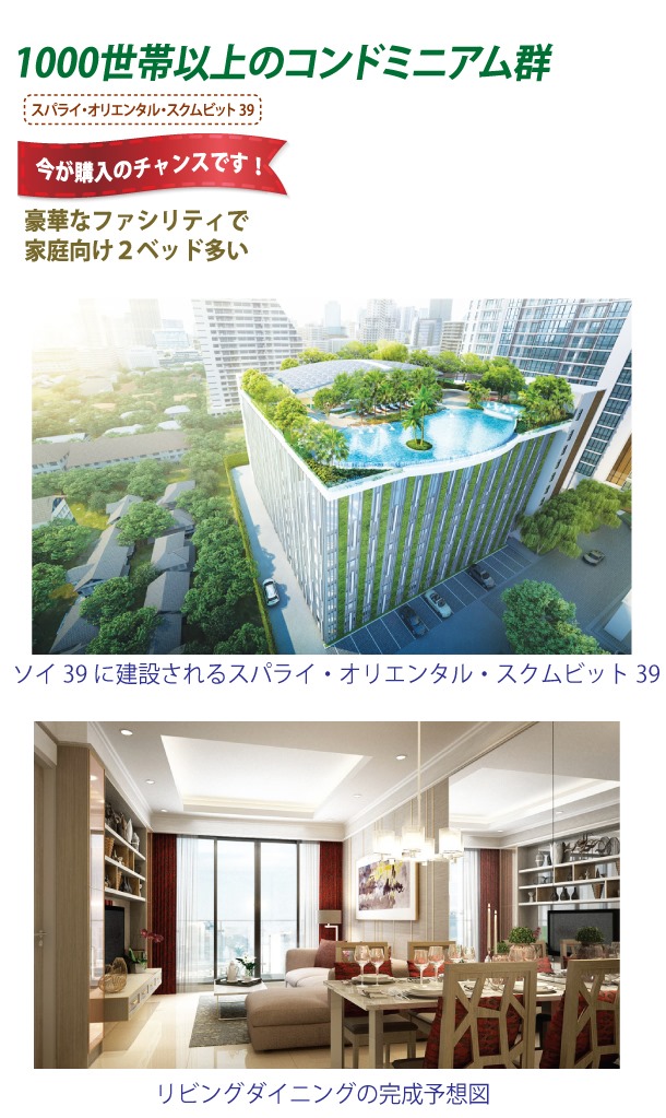 脚光を浴びつつあるこのエリアに、1000世帯以上の巨大コンドミニアム「スパライ・オリエンタル・スクムビット39」が建設されます。デベロッパーはスパライですが、この名前で至る所に建設されており、既にスパライ プレースが建設されている横に、今度は5棟で勝負を挑みます。