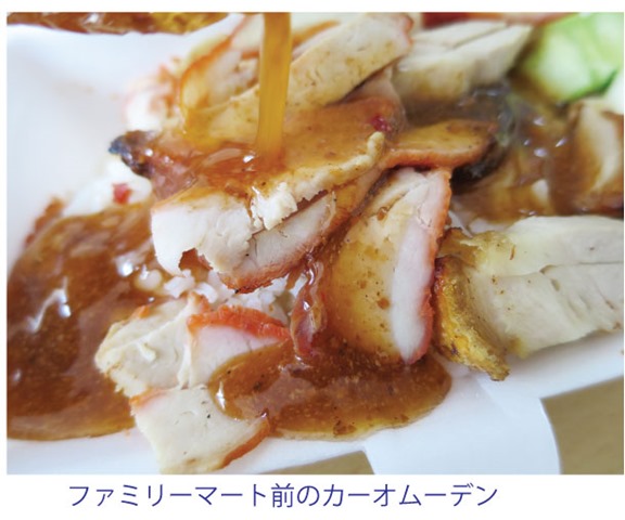さて、ムーデンは実のところ以前、屋台に出向いて食べたことがあるが、そのときは、「他の店と変わらない味」と拍子抜けしたが、今回のテイクアウトでタレをタラリとかけたが、この店のタレは豚肉のスープでダシをとったような感じで、コクがあり、他の店のように少し甘めだが、それほど甘くない、ということがわかった。