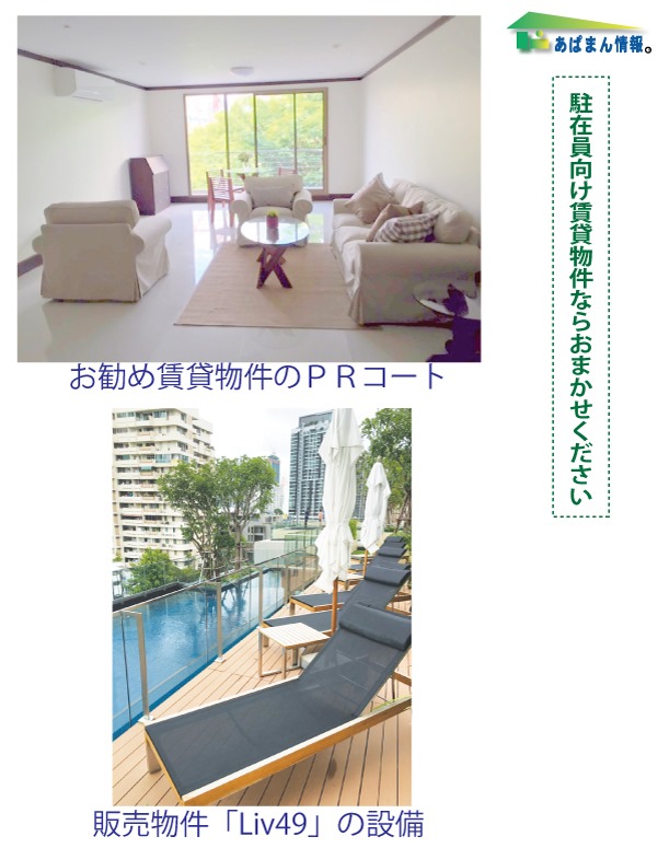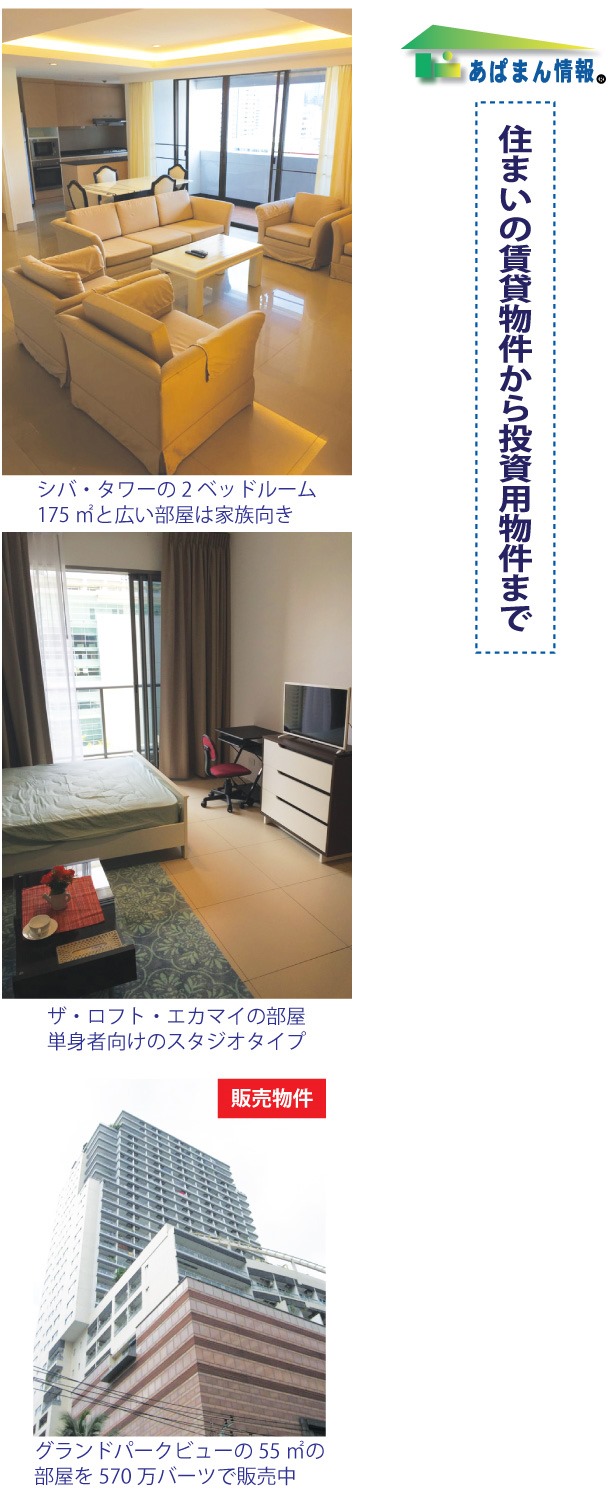 日本人駐在員の住むまいのことなら、タイで26年の実績がある「あぱまん情報」へお問い合わせ下さい。BTS沿線を中心に日本人にとって便利な住まいを仲介しています。