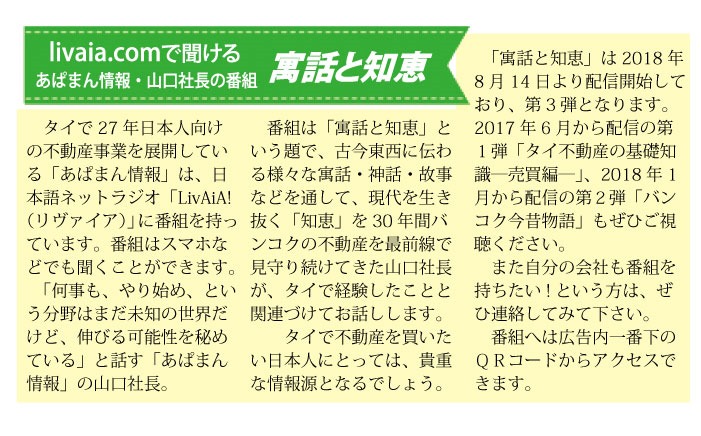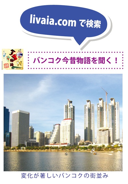 ネット検索で、livaia.comを見てみると、「バンコク今昔物語」という題で、タイで不動産事業を展開する「あぱまん情報」の山口社長が出演されており、過去のバンコクの風景を語っていらっしゃいます。