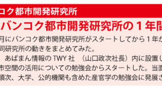 あぱまん情報のTWY社の山口社長(本社:バンコク・アソーク)は、バンコク都市開発研究所を設置し、バンコクの都市空間の活用についての勉強会をスタートした。
