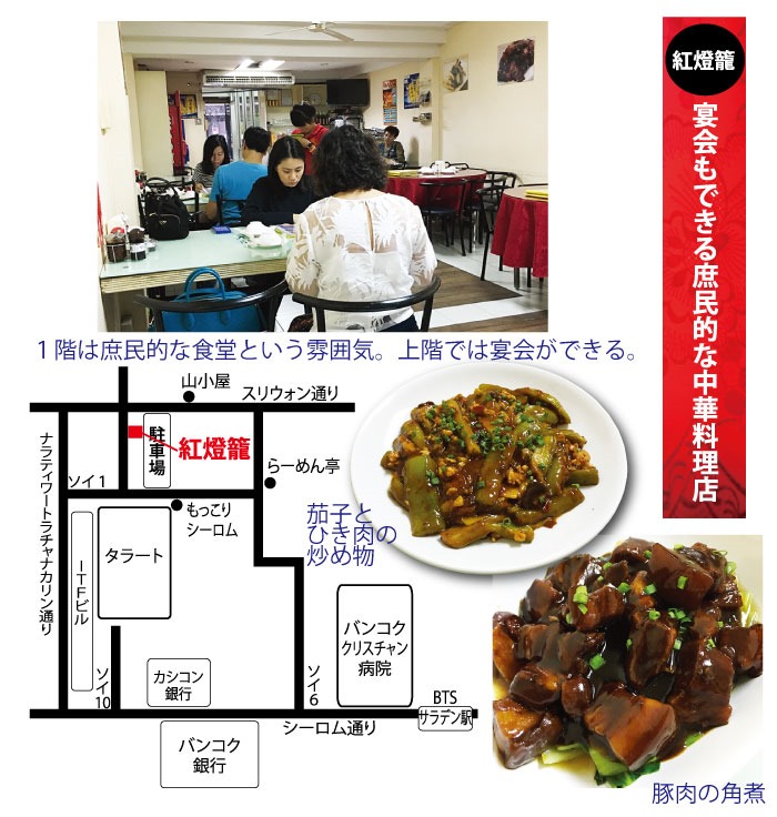 シーロム界隈で手軽に利用できる中華料理のお店が「紅燈籠」です。夫婦でシーロム近辺に住んでいるので、夕食の食事等で利用します。