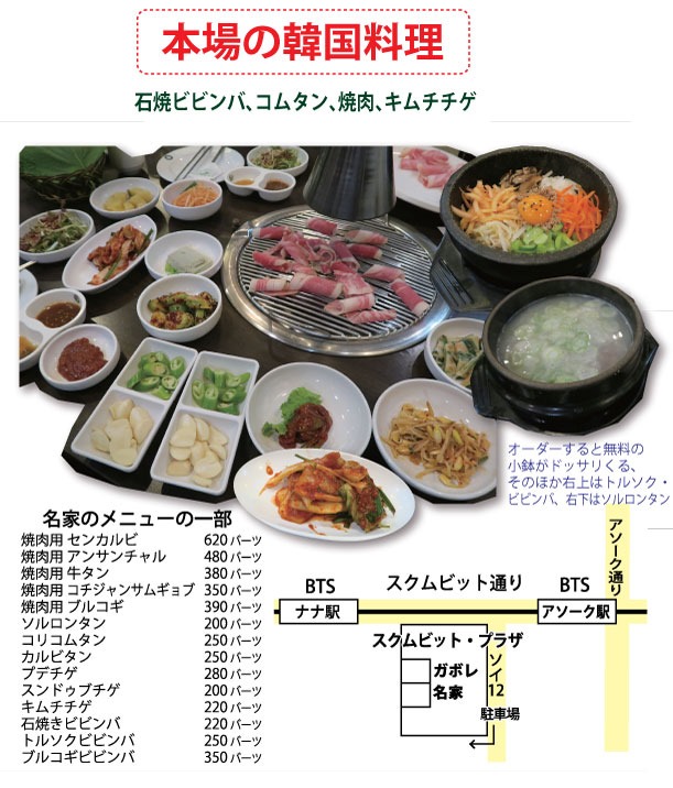 最近はタイ人向けに石焼ビビンバも広まっているが、本場の味といえばやはりスクムビットプラザ。韓国の料理店が集まっており、