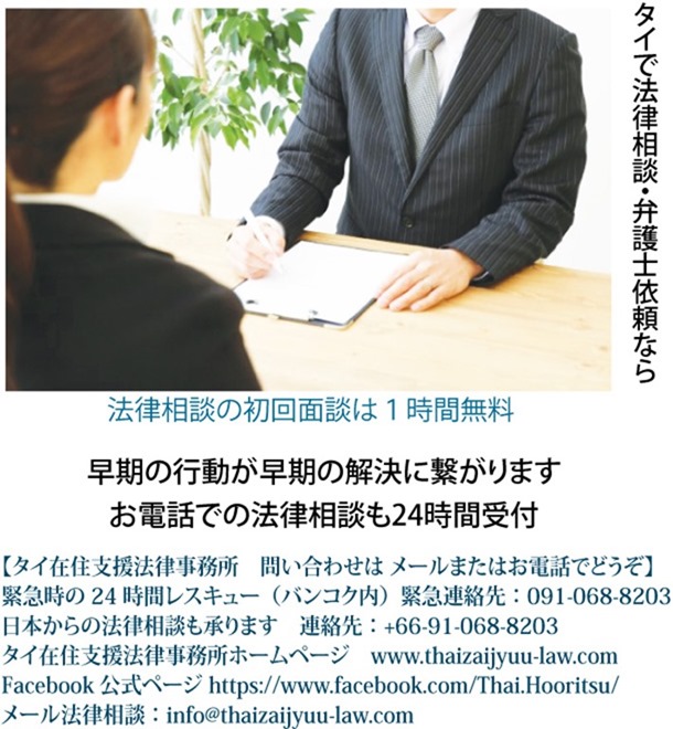 法律相談については、日本人コンサルタントがタイ人弁護士と連携を取りながら親 ...