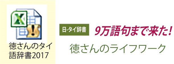 「徳さんのタイ語辞書2017」。在タイ17年になる徳原さんがタイに来てからコツコツ、タイ語‐日本語の辞書をエクセルでつくり、今では何と9万語句を所蔵するまでになり、「あと2年かけて、11~12万語句にまでして完成させたい」と意気込んで ...