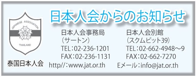 日頃より、タイ国日本人会の活動にご参加、ご協力いただきまして、ありがとうございます。