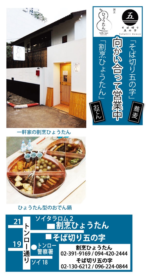 トンロー・ソイ・タラロム2の「割烹ひょうたん」は、斜め向かいの「そば切り五の字」の五関氏がやっている「おでん割烹」です。