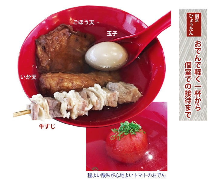「割烹ひょうたん」はおでんで軽く一杯から個室での接待まで